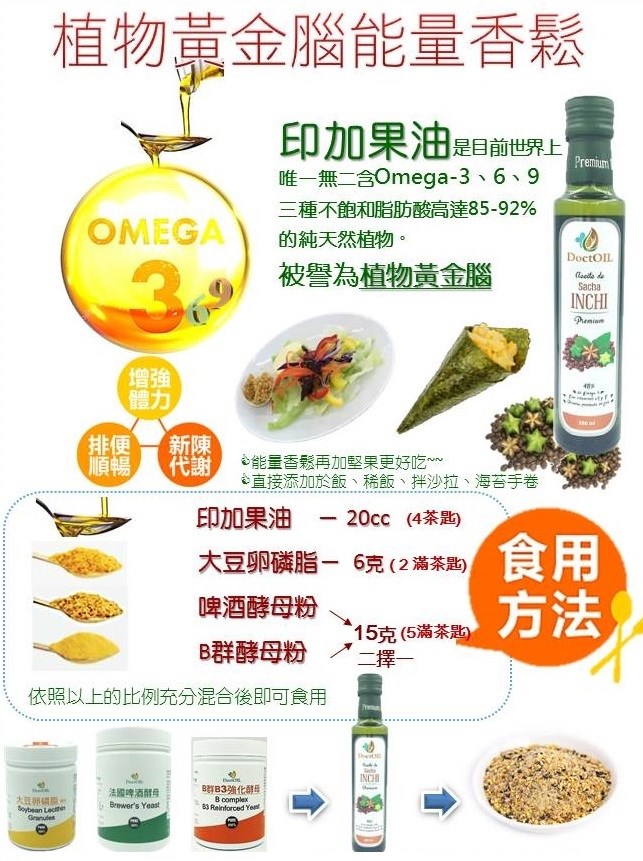 印加果油是“生命活力元素”&”消除亞健康”的理想營養補助食品之一 2004年於巴黎世界食用油博覽會大賽 2004~2006年於巴黎世界食用油感官和品質 2007年於巴黎特色食品